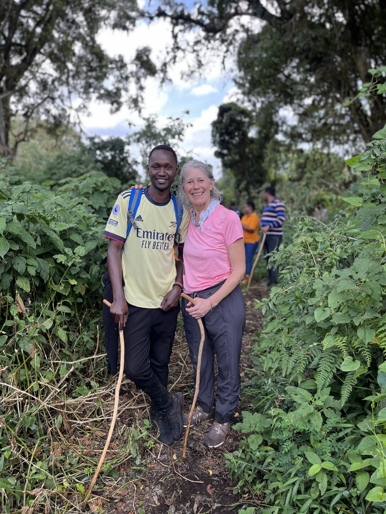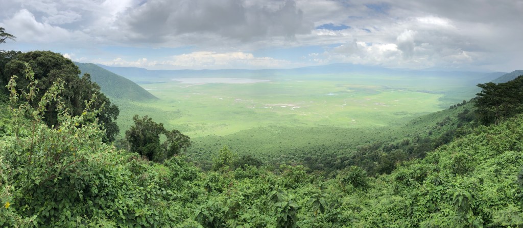 Let’s start with the hike yesterday. Dr. Shama and Jacob from reception, organized a group for a 22 kilometer hike through the jungle to the rim of the Ngorongoro Crater. Or, as I lovingly call it “the death march”. One of our guides carried a rifle to scare off – not kill – any aggressive animals. It was not needed. The elephants and monkeys were busy with their daily tasks and barely noticed us. We encountered some leopard poop on the trail but our guide Emma said “they are shy and will not come out”. It was not an easy hike!