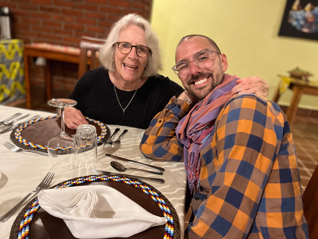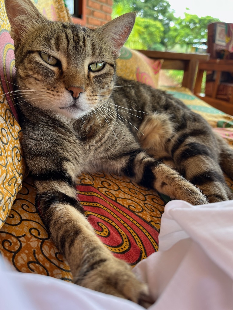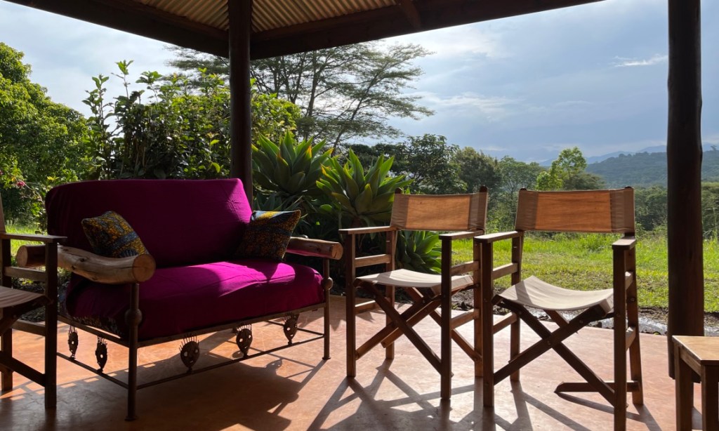 Nurse Anne modeling the happy hour view from our outdoor room. Annie and Brad at farewell dinner.Rose in here fabulous new suit! Ms. FashionRacking up a tab at Lilac.Matilda the pest and my new best friend.Yesterday Anne and I did our final walk and lunch in Karatu with Collyn! 15,000 steps…..Charlie and Meow say goodbye to Rose, Brad and Collyn.