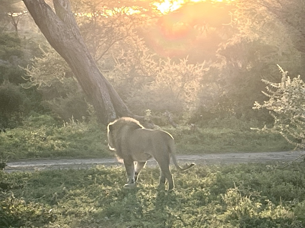 Today is my last full day. Eagle eye and I headed out at 6:30 AM. No longer considered early. Beautiful sunrise, freshest breeze and male lions patrolling the perimeter of the camp. They were clearly the boss.