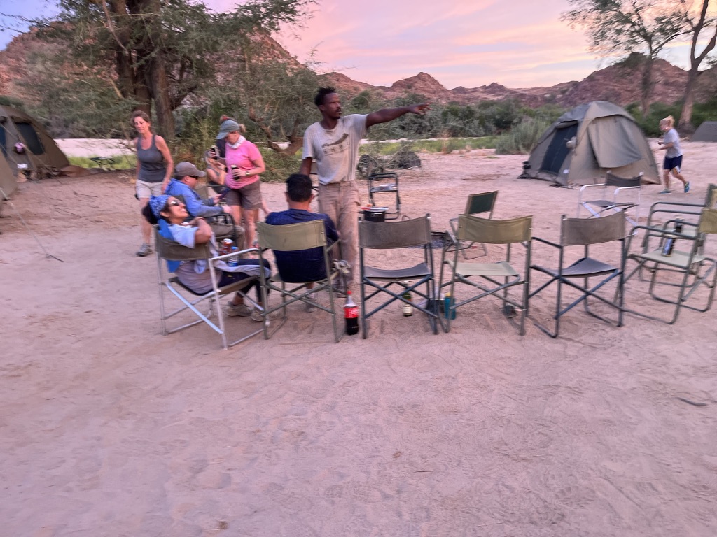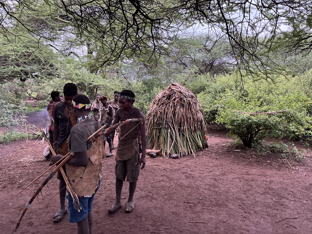 We were invited to tour a tent. They are hunter gathers so their homes are not meant to be permanent. Our guide said they like photos of animals. I showed them photos and videos from past safaris and my Rwanda hike with the silver backed apes. They were beyond delighted pointing and making sounds to mimic the animals. They had not seen apes so they were intrigued.