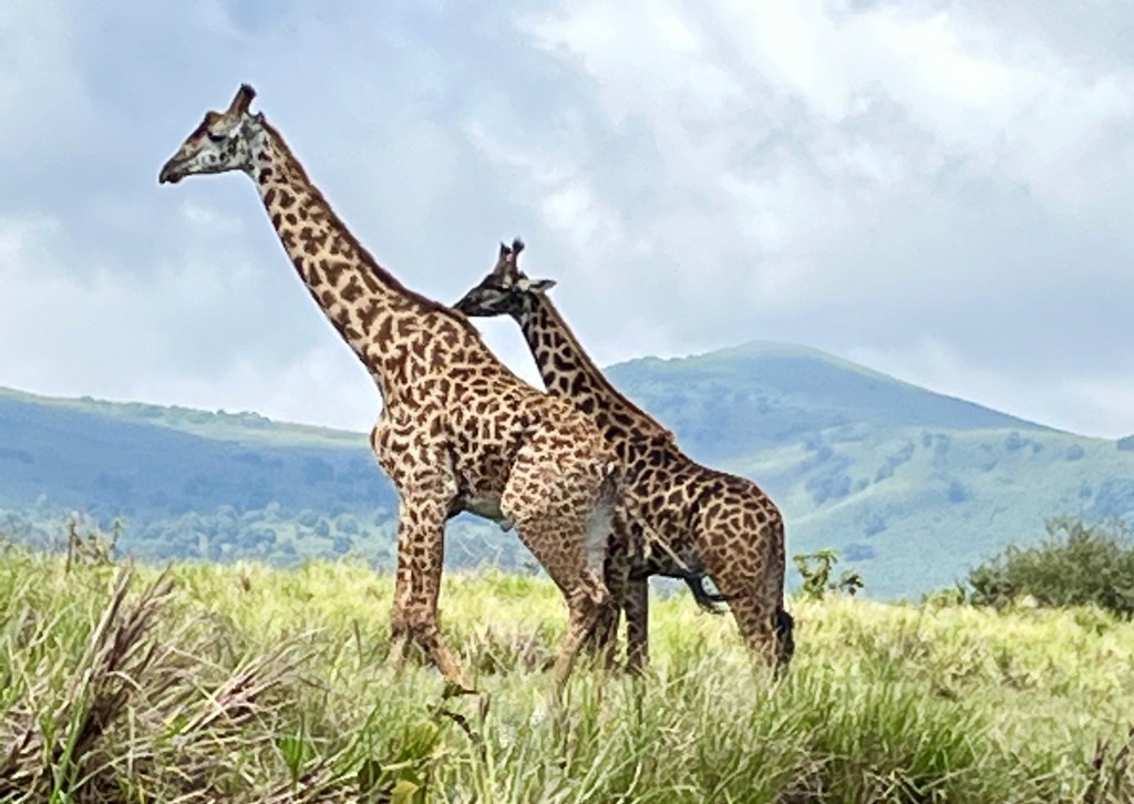 And the weekend before that my friend Melora and I met for a walking safari in Arusha National Park at the base of Mount Meru. We stayed at the beautiful River Trees resort with great food, wine and nightly gin rummy. The safari delivered a giraffe trifecta. They came out in droves along the ridge line and right next to us on our walk.
