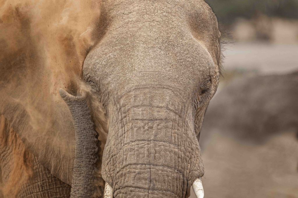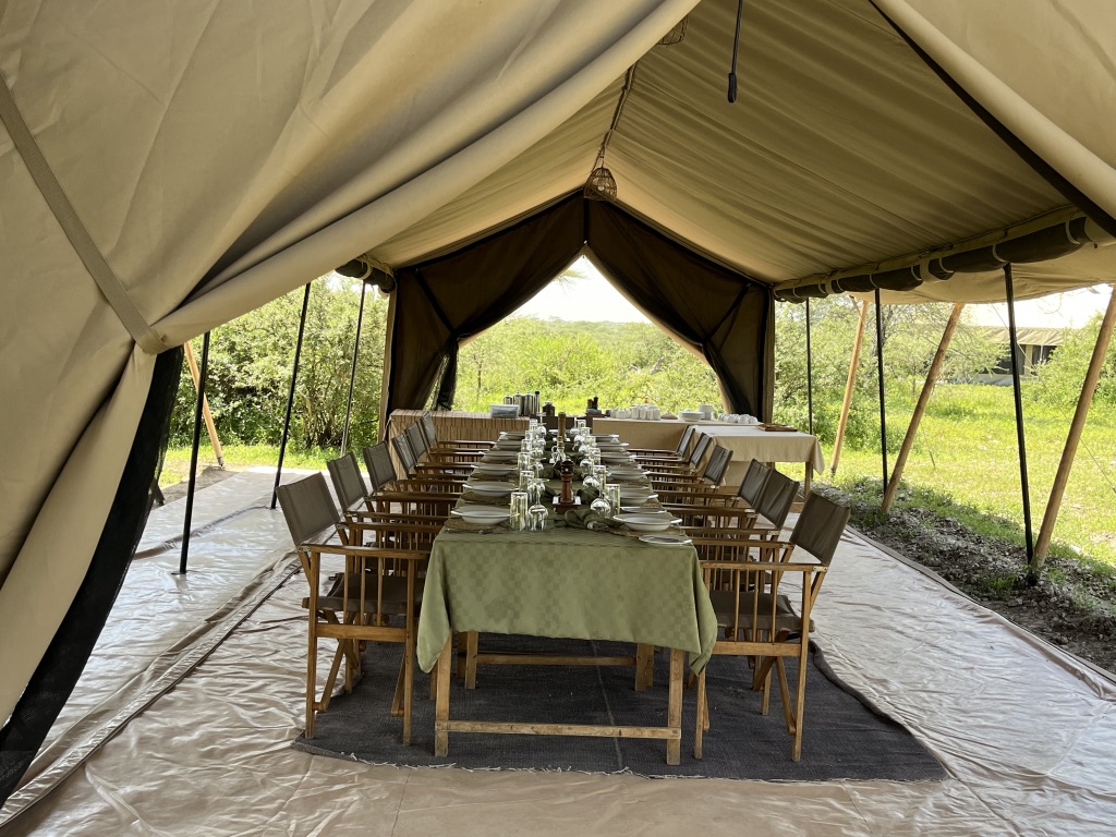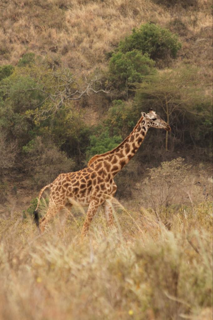 -It is also one of the places left to see black rhino. We saw plenty but none close up. I’ve been to the Crater often and found it a great place for all animals (expect no giraffe there). But the animals were huddled in warm dry places, out of our view. I was bummed for Collyn since it was her first safari but it didn’t keep us from loving the beauty and hanging with the hippos when we ate our lunch. And much to our delight, on the drive to the boma, we saw a huge elephant with well-developed tusks running in the field next to our truck!