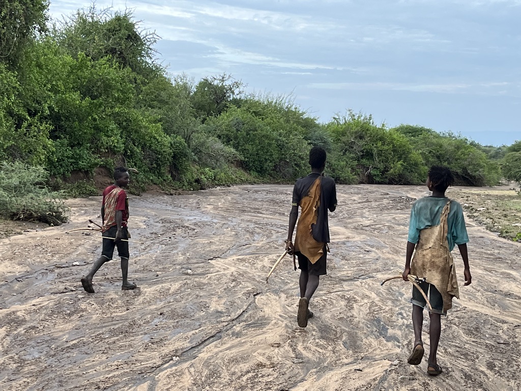 At sunrise we set off to hunt. Sometimes walking and others running, we followed them through the bush while they scored mostly birds and small animals.