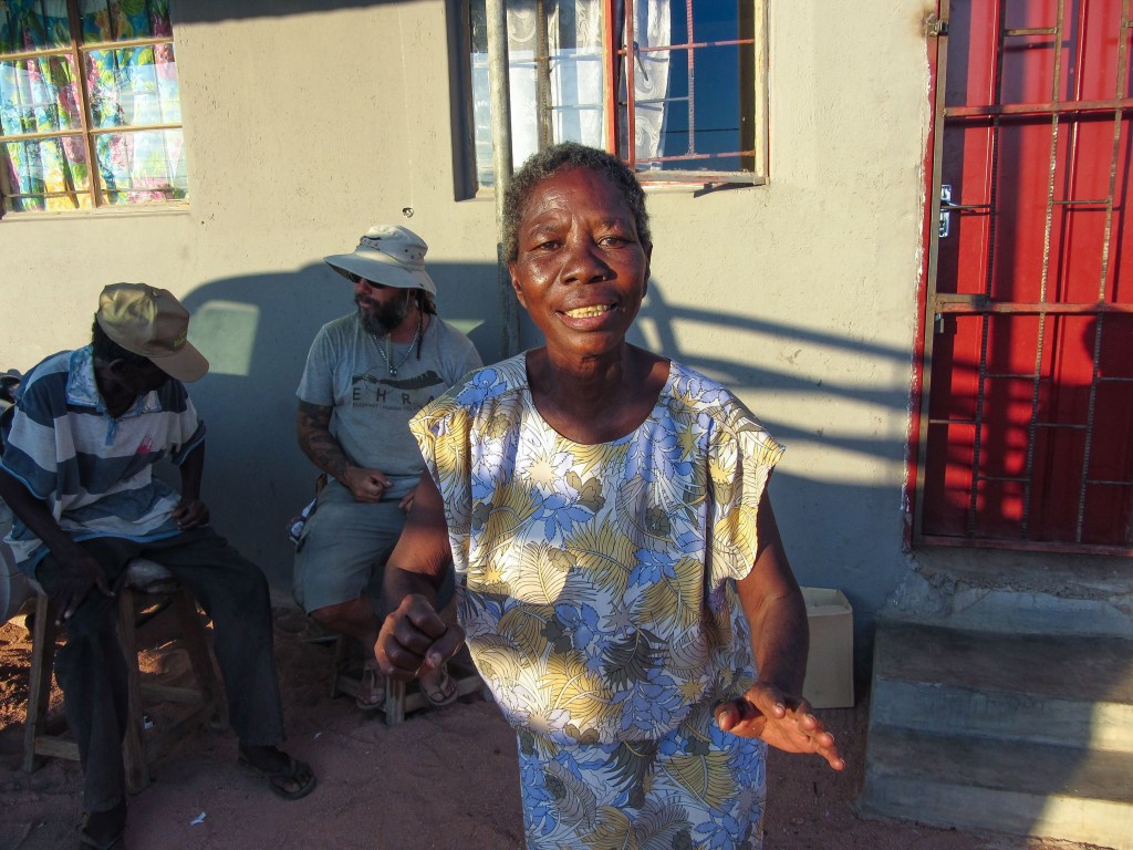 Four and a half miles later we arrived back at their camp to meet some of the women and buy bling. The hunters skinned a bird and put it in the ashes. They offered it for a bit of breakfast …. Hummm not bad!