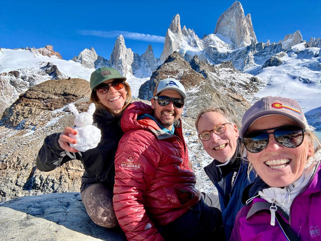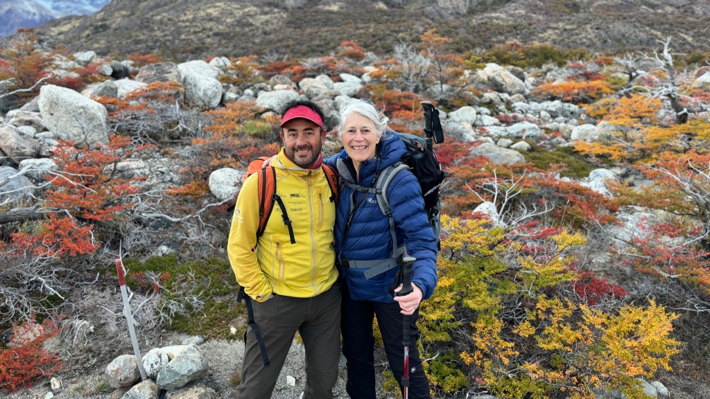 Lucho, assistant guide on our long hikes in Argentina, is a hiking and skiing guide and a serious climber. I was entertained by the stories of he and Ro hiking up 5 hours to ski down – no chair lift needed. Tales about climbing the majestic peaks in our view, were downright scary. Lucho taught me new techniques for my iPhone 15 camera. His photos are amazing. Married with 2 young sons, they are a family that climbs together.