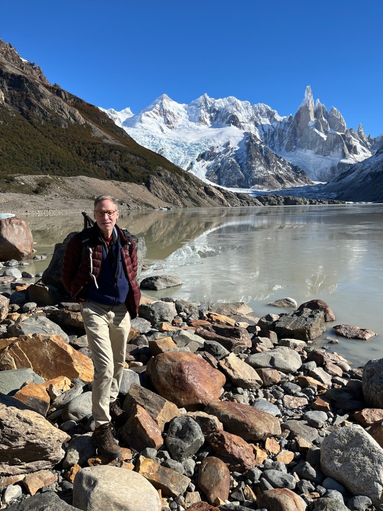 Miles of stunning river, valleys, forest distracted me from the fact that my training for this trip was not adequate. But the last mile, I came face to face with a steep boulder field that screamed “back off old woman”. The little mountain goats were already eating an early lunch at the towers with Claudia, and Paul had at least 50 photos. I was worried about slowing Paul and Ro down. But Ro was having none of my thoughts about skipping the last part. He took my backpack and carried two to the top. A couple things were clear to me at this point. 1) Ro would be part of the magic of Patagonia and 2) I need a better day pack for my next hike!
