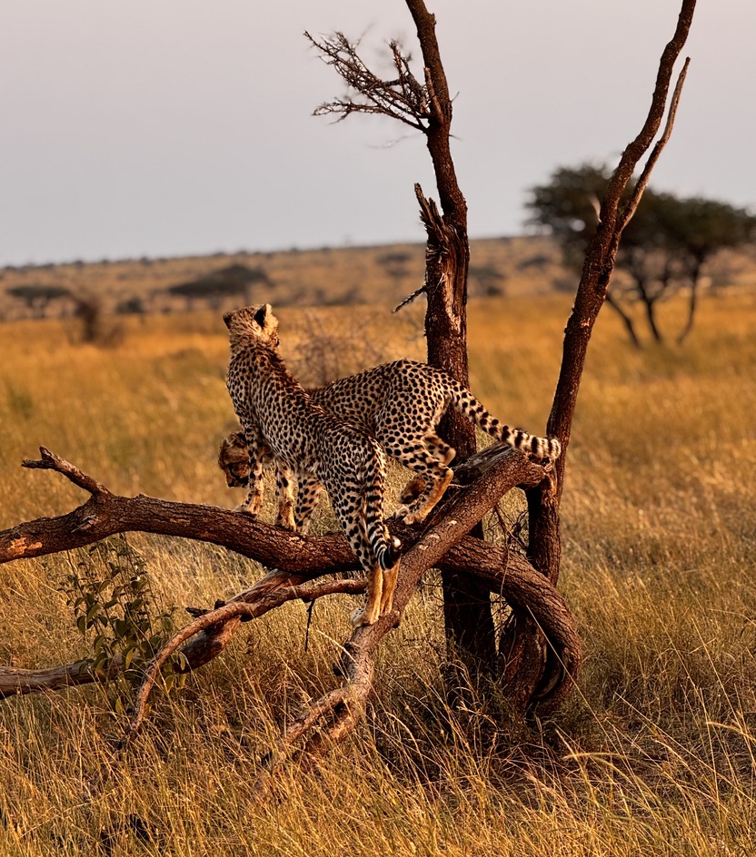 Ten minutes in, a mama cheetah with her three romping tweens, put on a show. We quietly followed them knowing mama was on the lookout for breakfast. Her stalking skills, although impressive, were not adequate to get the two nearby gazelle.