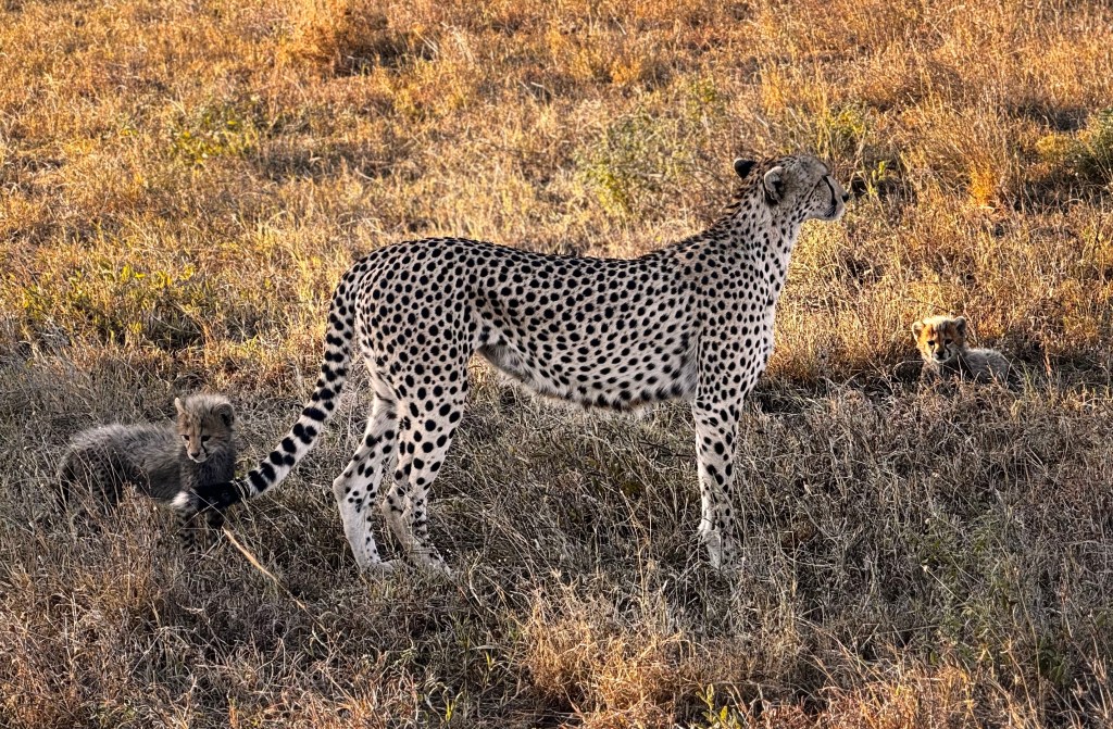 After a morning of male cats we found another mom cheetah with two little cutie kitties.