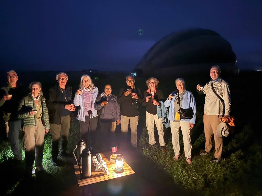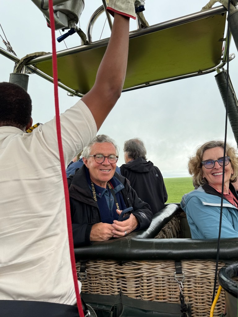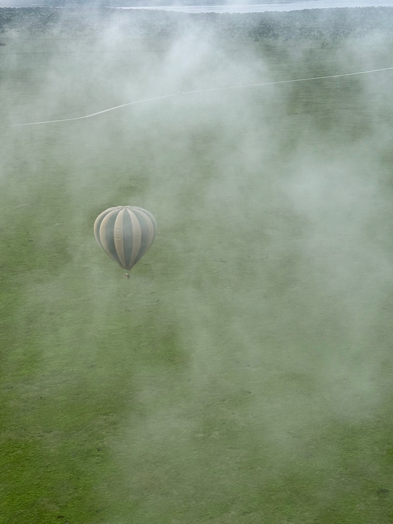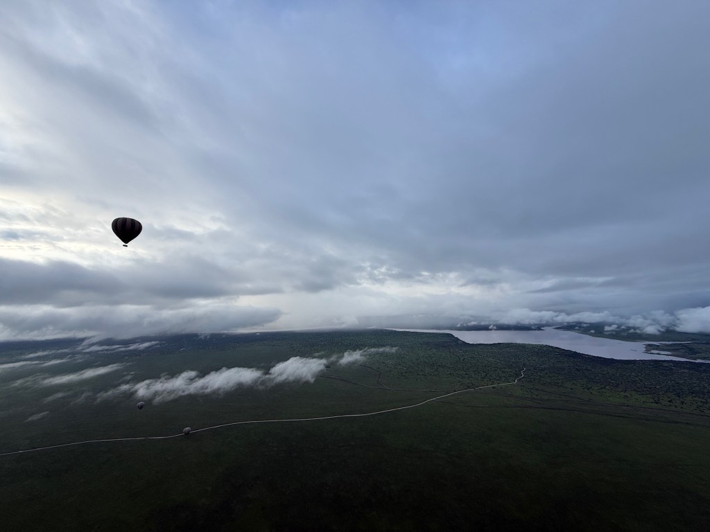 Serengeti day 3, most of the group gets a VERY early morning coffee-to-go for an hour plus ride to our hot air balloon.  It’s early because we will rise up over the Serengi with the morning sun.  The sun is muted but we are able to view the grandeur and animal movement below and touch down just before the rains begin.