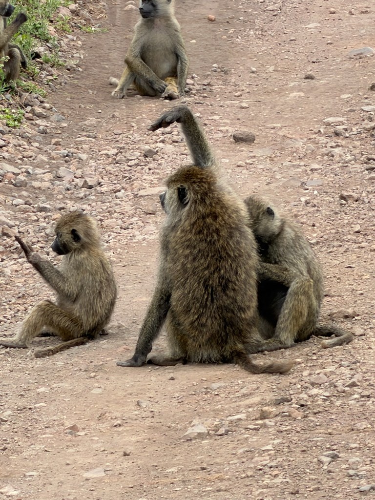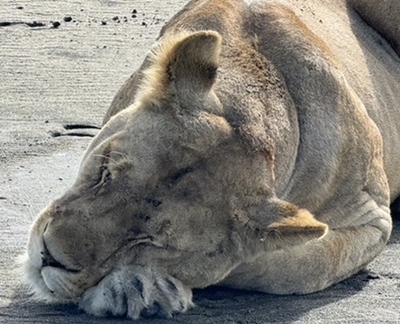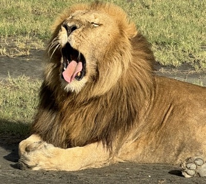 Jambe leads us to a valley where we are able to get out of the car and set a new record for selfies.  Brigid is giving me selfie lessons and there has been SOME improvement.  Our return to lunch is lion heavy.