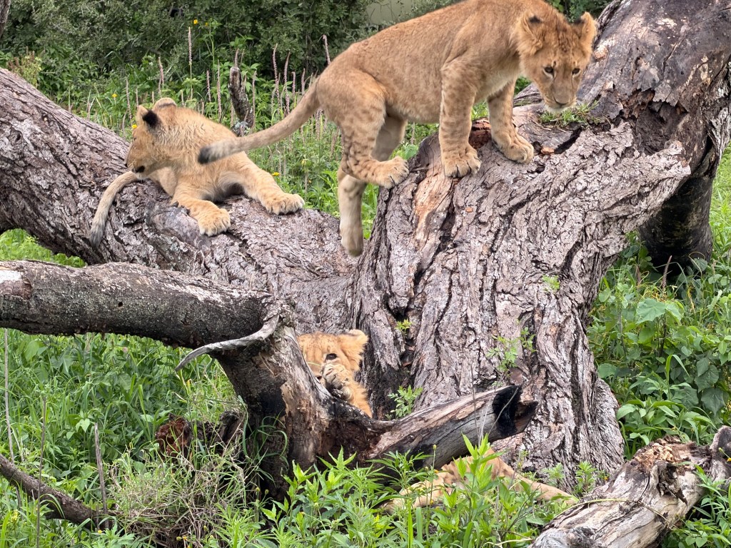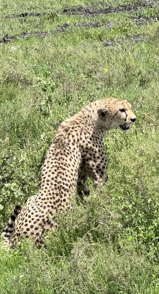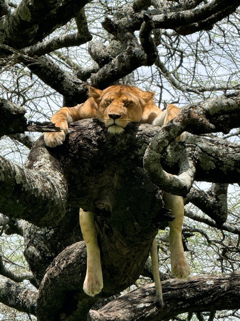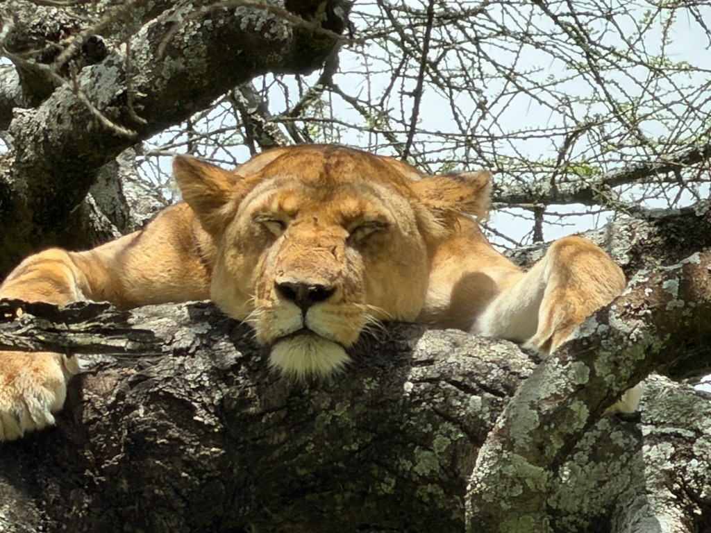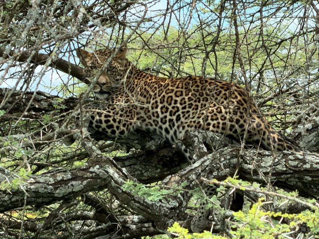 The Serengeti is not ready to let us go.   We encounter a highly entertaining family of elephants auditioning for Cirque du Sole.   Finally we tear ourselves away only to trip over little lions playing and their – not so responsible – adult supervisor nearby.  Hard to leave, we force ourselves to ……wait no, not a leopard in a tree!