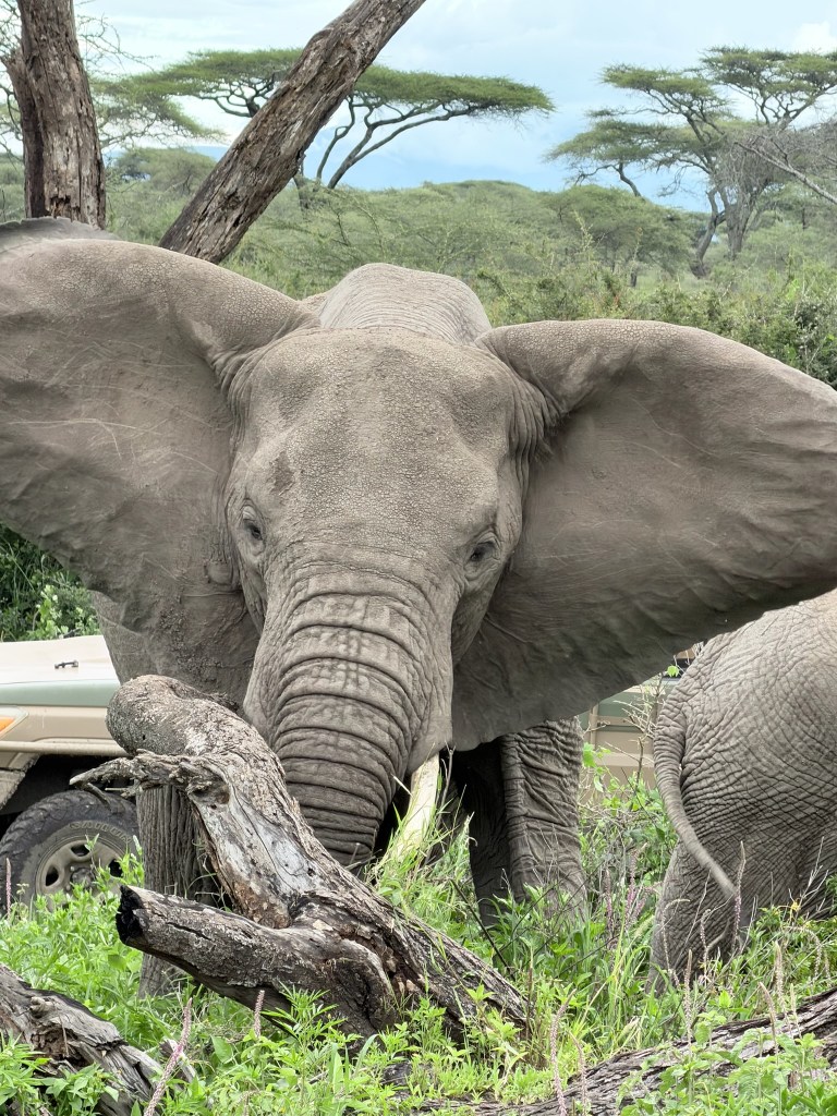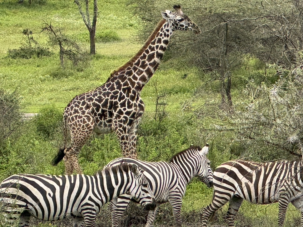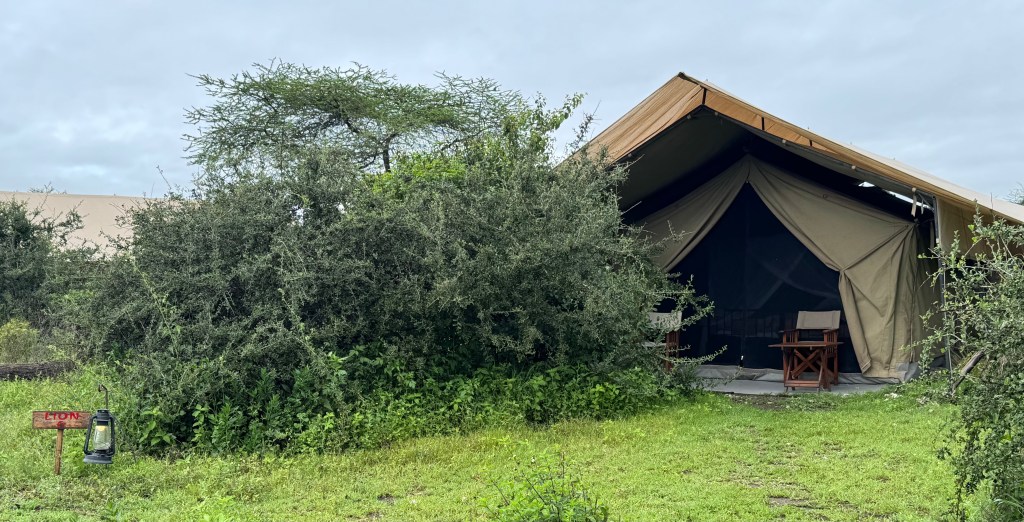 After a robust lunch (nope haven’t missed a meal), we continue and take a quick stop at the gate for photos and then on to Zebra Camp.  We will spend the next four days exploring the varied eco-systems of Ndutu from here. The invitation for animals to charm us had reached the camp.  We were greeted everywhere by zebras and with their giraffe buddies, they littered the path to our tents.