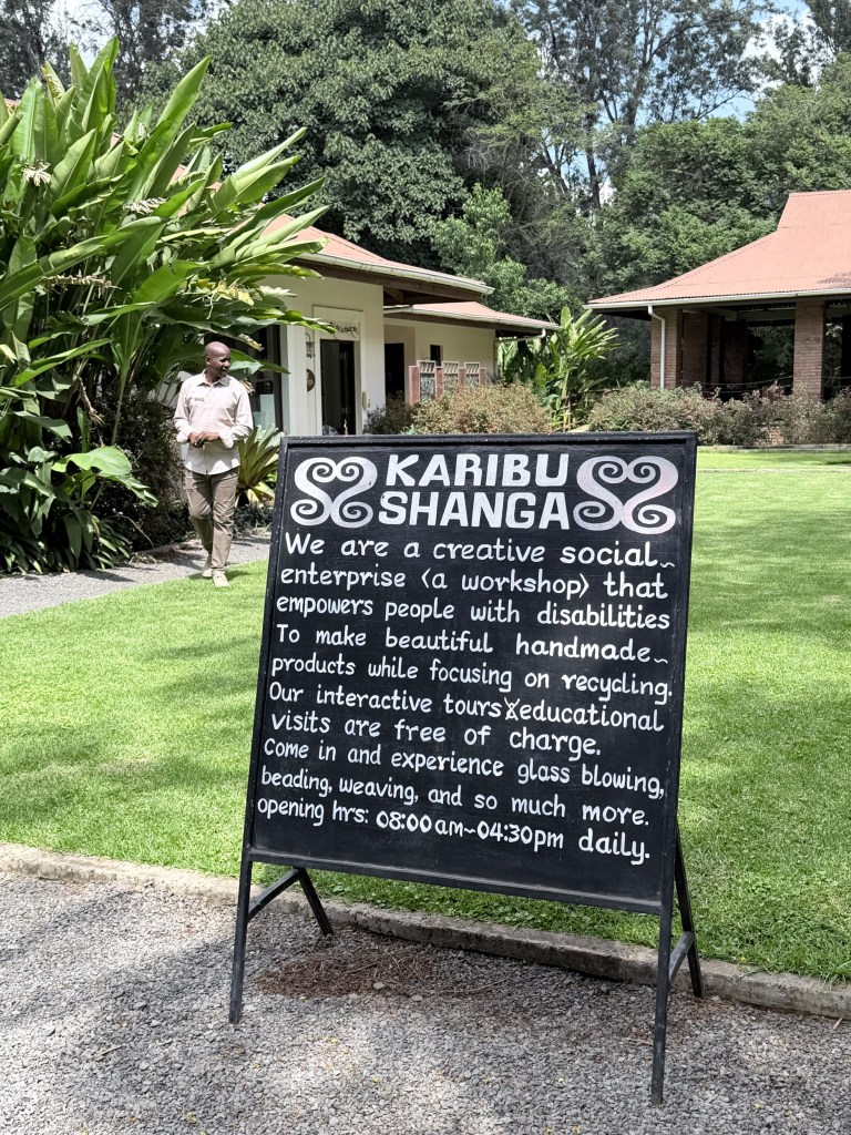 We then headed to Arusha Coffee Lodge for lunch and a tour of Shanga, a project that supports disabled people creating blown glass, weaving and other crafts.  Lunch was delicious.  By now it is becoming clear that good food will be good and plentiful – a theme for the trip!  And yes, we shopped more!