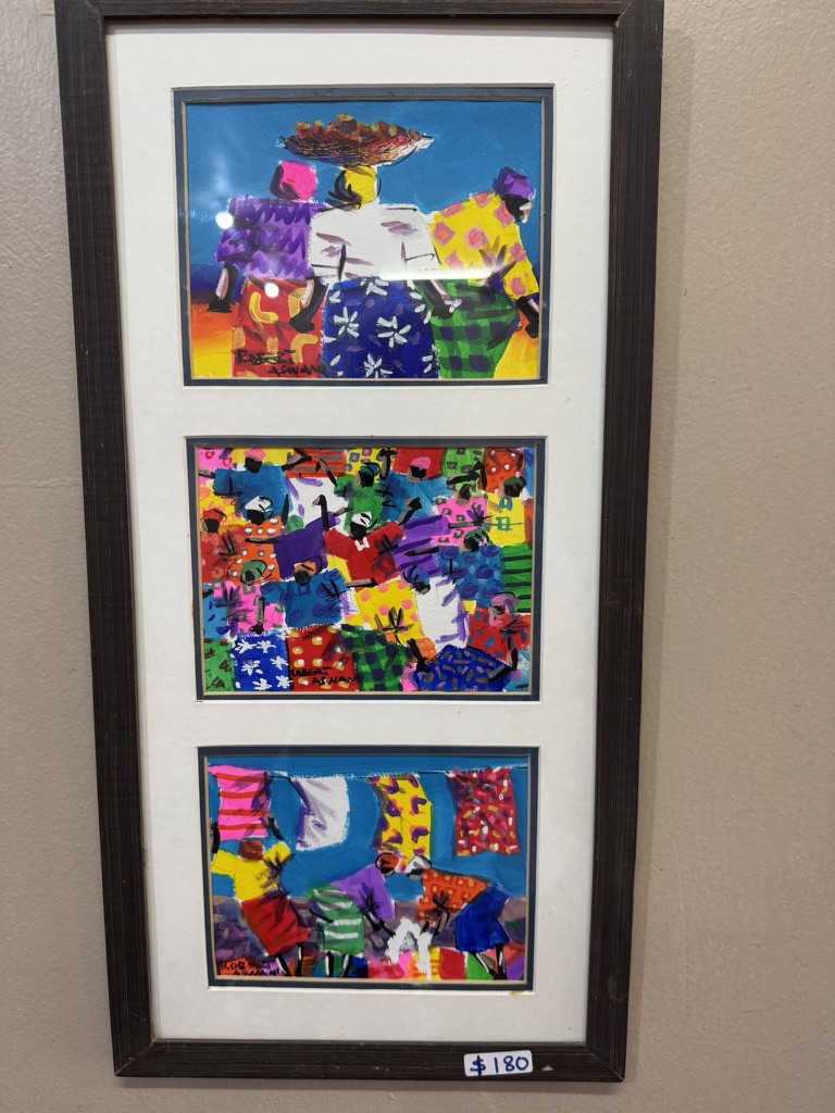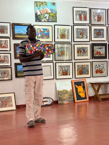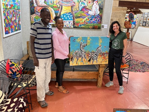 On our long trip to Karatu we visited artist Robert Aswani.  Brigid was already in a love affair with zebra and had a cool painting sent home.   The cute couple and others found pieces to roll up in  their luggage.  My art addiction kicked in and I took home three of his laundry day paintings.