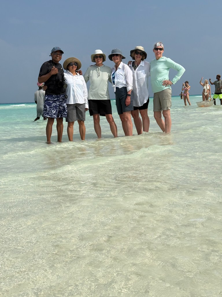Smita, Mukund, Susan, Lori, Jean and Kim had a different experience than expected.  It was an old wooden fishing boat.  The coral reef was crawling with snorkelers and not so many dolphins.  An early return meant the tide was out so there was an unexpected walk.  But the day was as beautiful as it gets.  And the walk produced photos hot enough for the over-60 Sports Illustrated swimsuit addition.