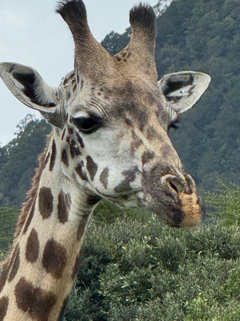Warthogs welcomed us first and lined the trail to GIRAFFE. (After I fell into a thorny bush!)  This park never fails to provide a giraffe trifecta.