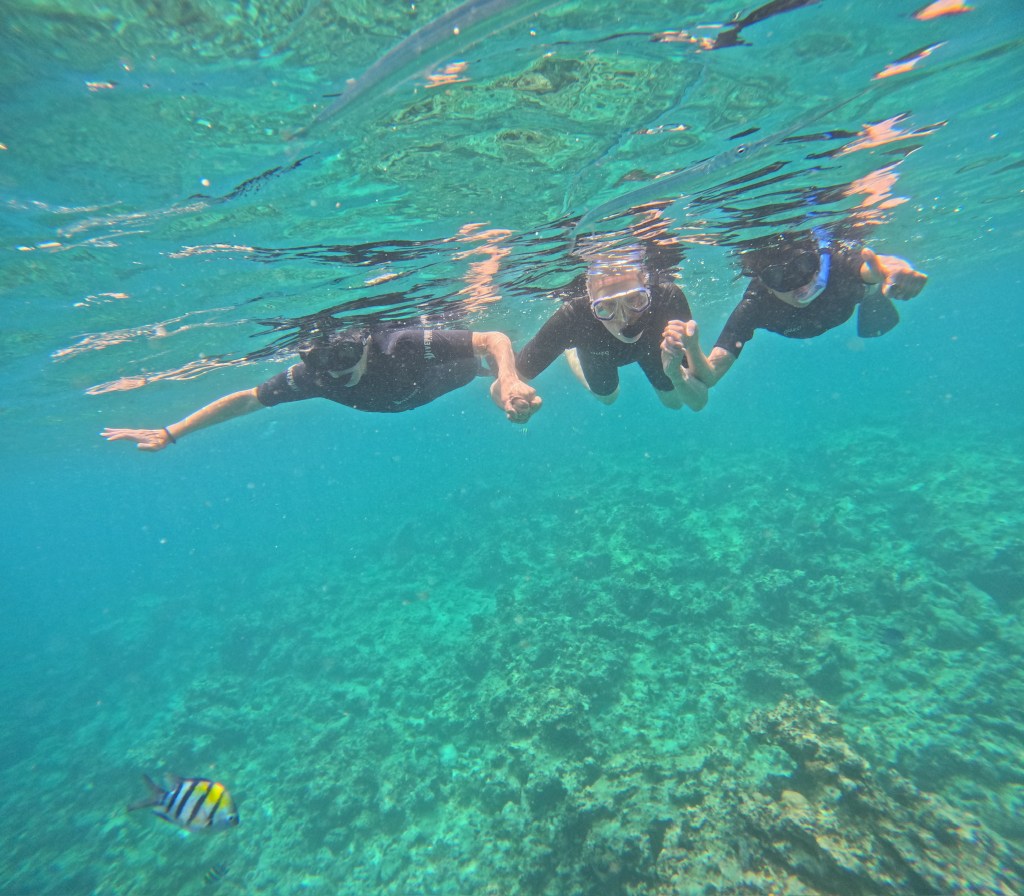 Done with the lazy beach life, a group booked the dolphin watch boat ride.  Paul, Brigid,  and I went snorkeling.