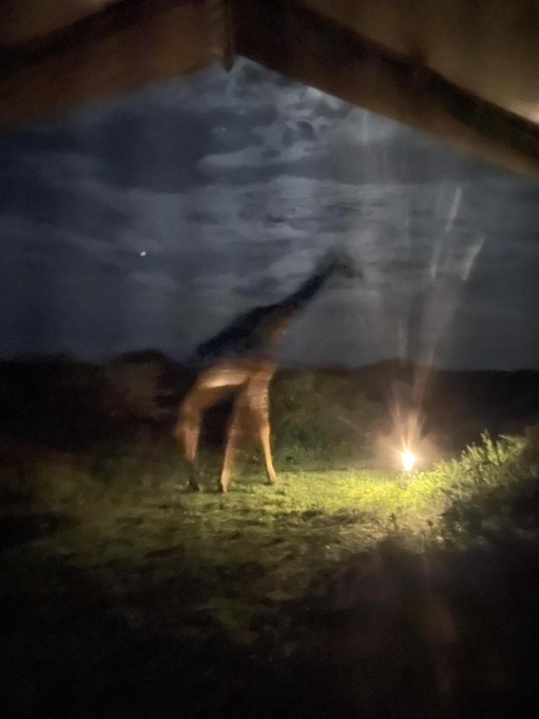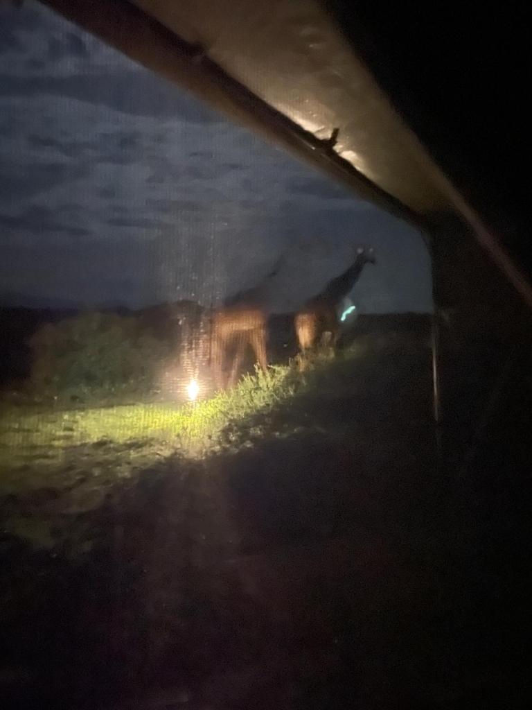 Then there was the midnight Twiga visit.  I was woken by a loud slurping to see her chomping away on my bush directly in front of my door.  Not unusual, I always keep my flaps up to greet night visitors, but she seemed other worldly.  By the time I registered the scene she was off.  Did I dream that?  Nope, soon I heard her going to town on the bush next door.